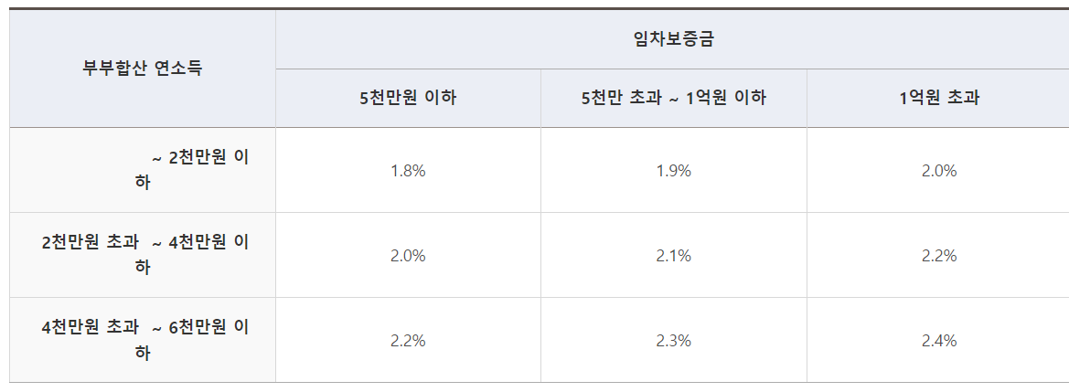 중복적용은 불가능하지만 우대금리를 알아볼텐데요, 연소득 4천만원 이하 기초생활수급권자 · 차상위계층께는 연 1.0%p,연소득 5천만원 이하 한부모가구 연 1.0%p, 장애인 · 노인부양 · 다문화 · 고령자가구 연 0.2%p가 있으며